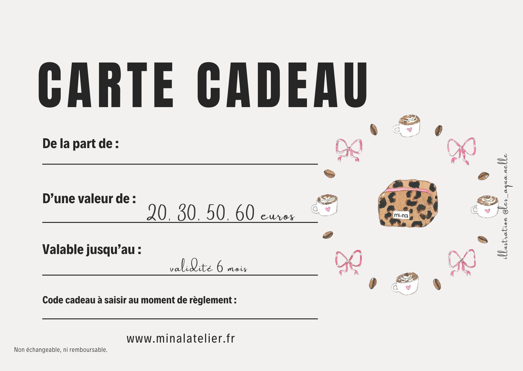 Carte cadeau mina l'atelier